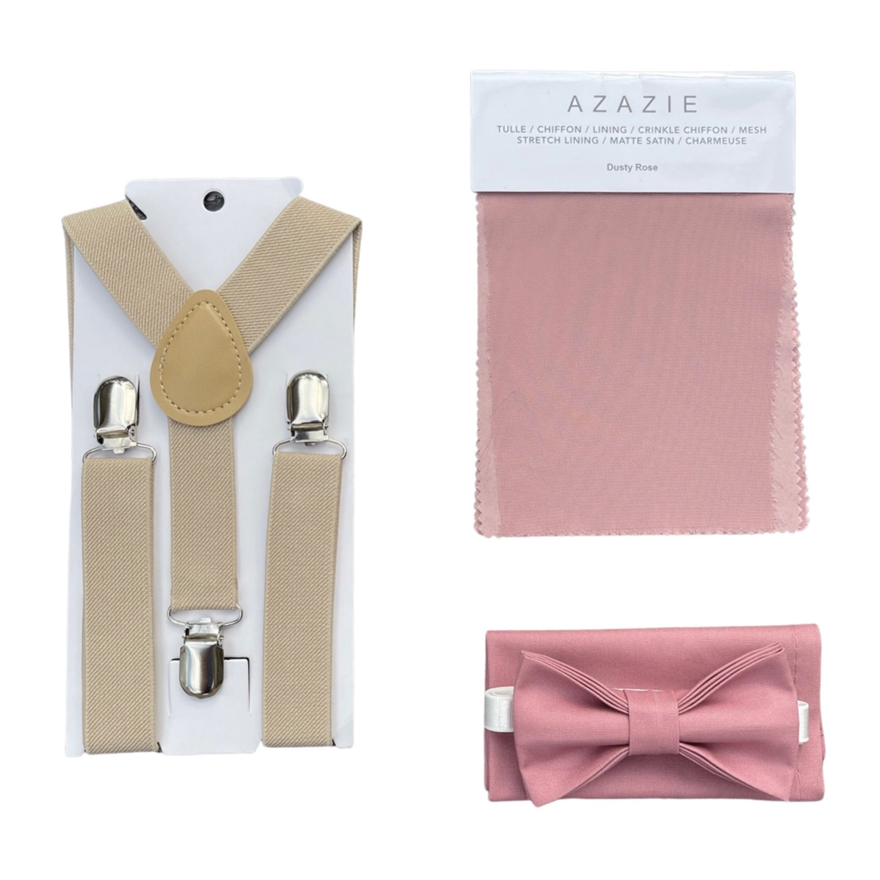 Dusty Rose Bow Tie Tan Champagne Suspenders Pocket Square Etsy