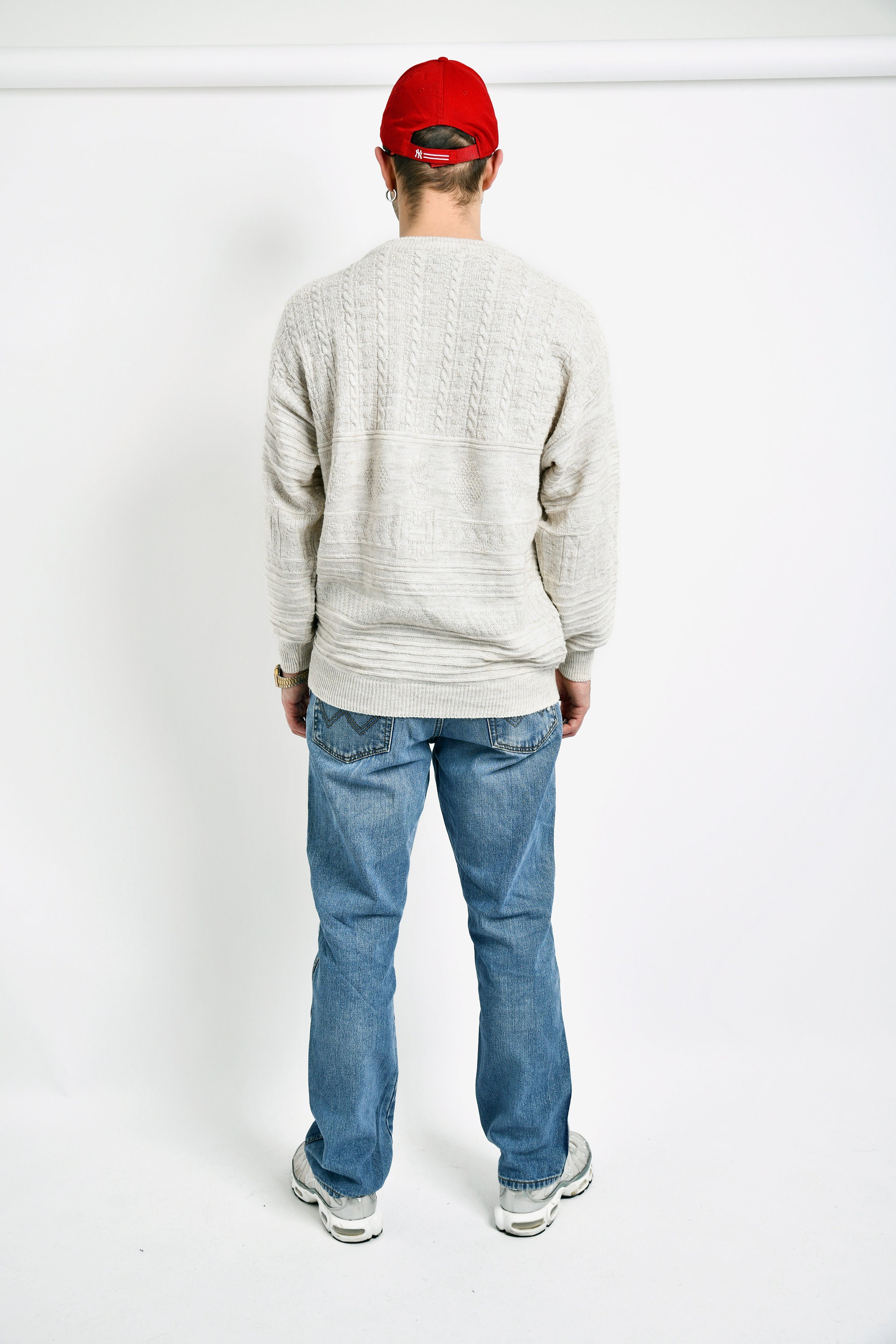 Vintage Cable Knit Sweater Mens Beige Cream White Colour Etsy