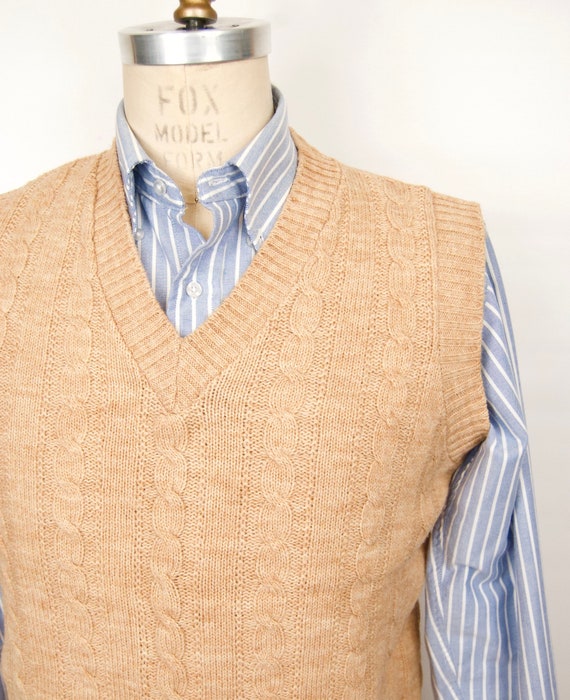 1980s 70s Khaki Cable Knit Sweater Vest Vintage Light Tan Etsy Norway